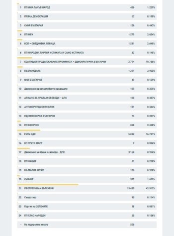 Според окончателните резултати за Прогресивна България във Видинско своя вот са дали 15 455 души, което е 43, 912 % от всички гласували.