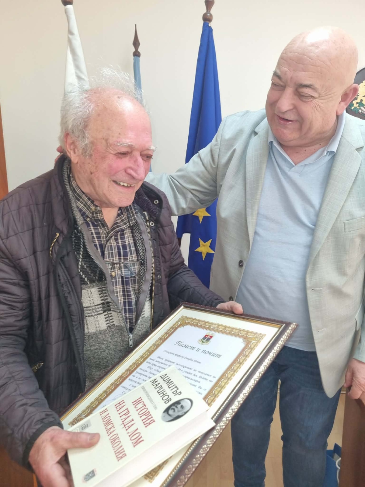 Сред подаръците бяха още книгата на Димитър Маринов „История на гр. Лом и ломска околия“, както и сувенири с логото на Лом.