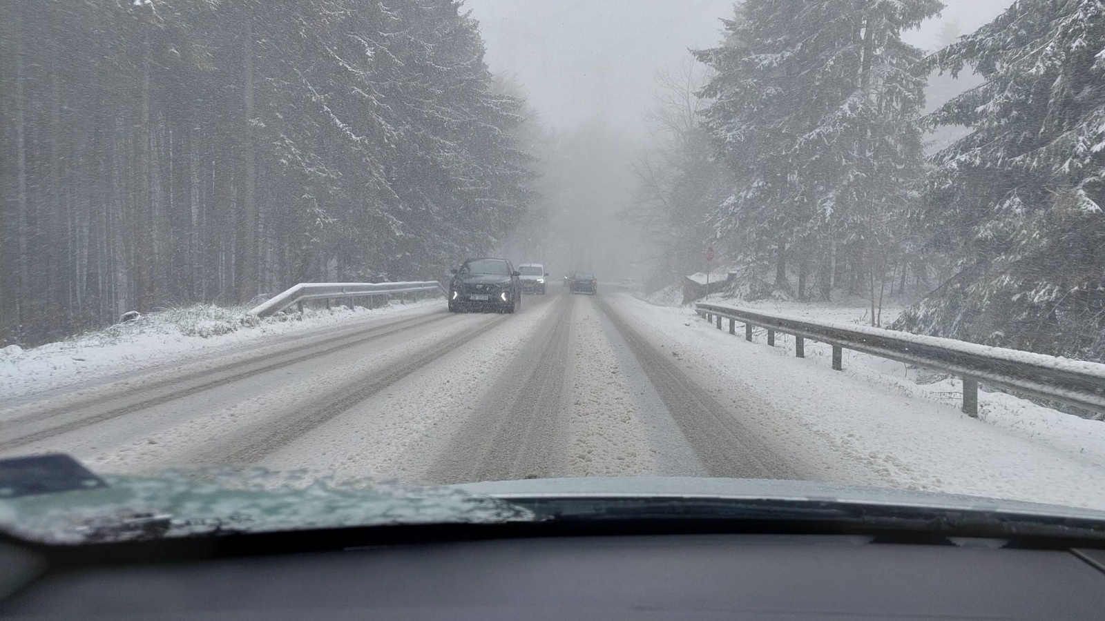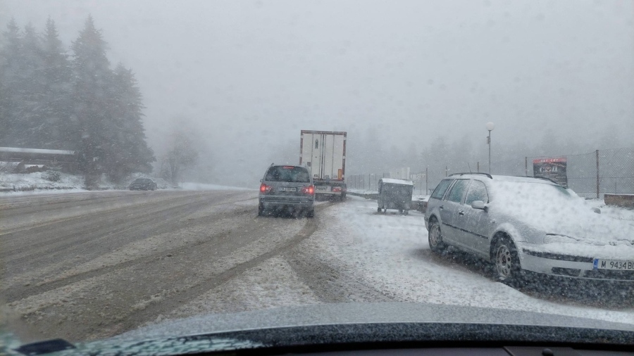 Сняг вали на прохода Петрохан. Заради рязкото падане на температурите снегът се задържа и образува покривка. Машините на областното пътно управление – Монтана са на терен.